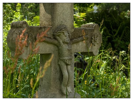 Kamienny krzyż na cmentarzu w Olchowcu
