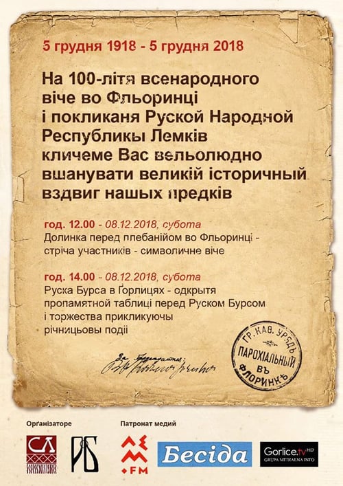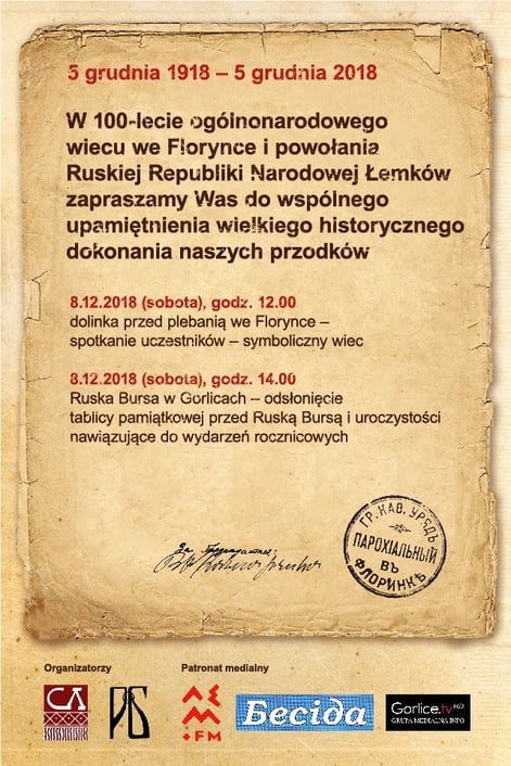W 100-lecie ogólnonarodowego wiecu we Florynce i powołania Ruskiej Republiki Narodowej Łemków